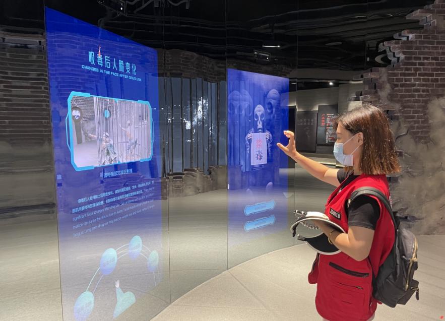 轻触按钮即可观察毒品原株生长,开关木门即可挑战5种吸毒诱惑,宣誓禁毒即可上传签名至汉阳树上。6月26日是第36个国际禁毒日,当日武汉市汉阳区禁毒宣传教育基地正式开馆,60余名禁毒社工与部分群众参观后,直呼科技感爆棚互动性拉满。